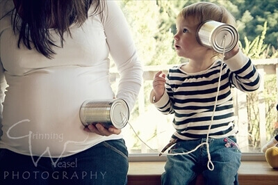 小物がなくても、お腹に手を添えて、「もしもしー。」って撮影したりします。